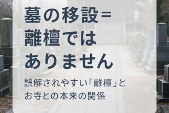 最近、「墓じまい」や「お墓の移設」に関する報道が増える中で、「墓を移したら離檀になるのでは?」と不安に感じる方が多くなっています。 しかし、墓を移設すること=離檀ではありません。この点は、ぜひ正しく理解していただきたい大…