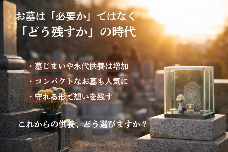 少子高齢化やライフスタイルの変化により、 これまで当たり前だった「お墓を守る」という考え方が、 大きく変わろうとしています。