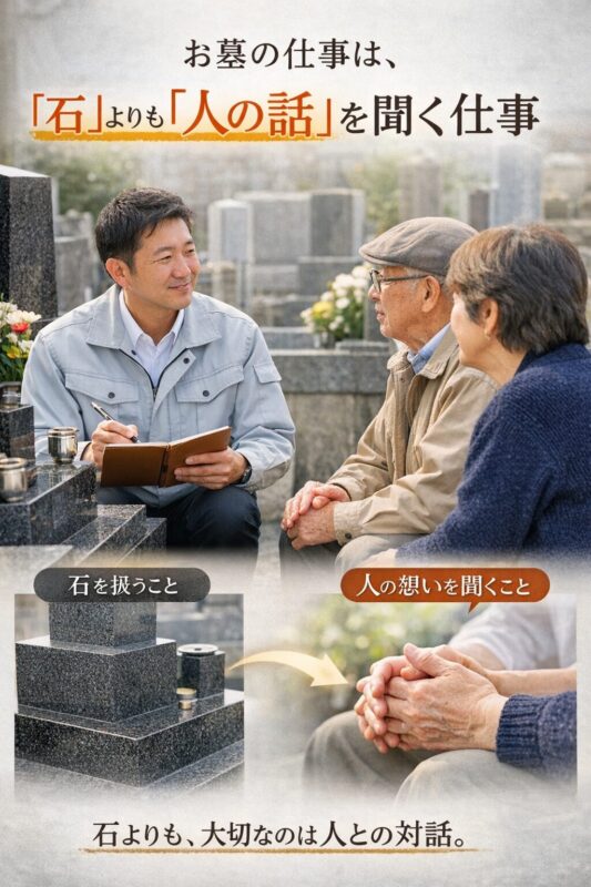 お墓の仕事は、「石」よりも「人の話」を聞く仕事