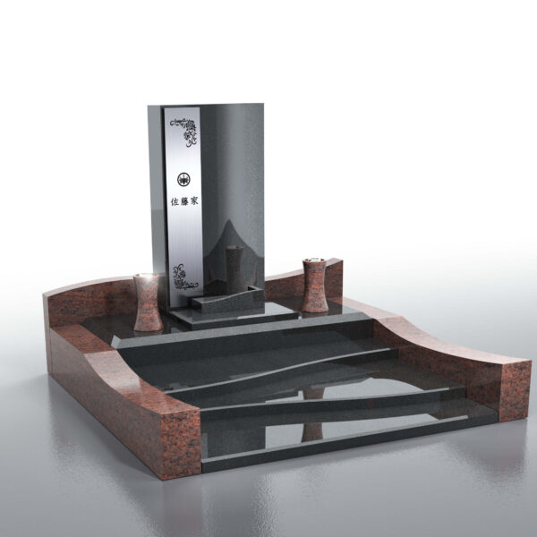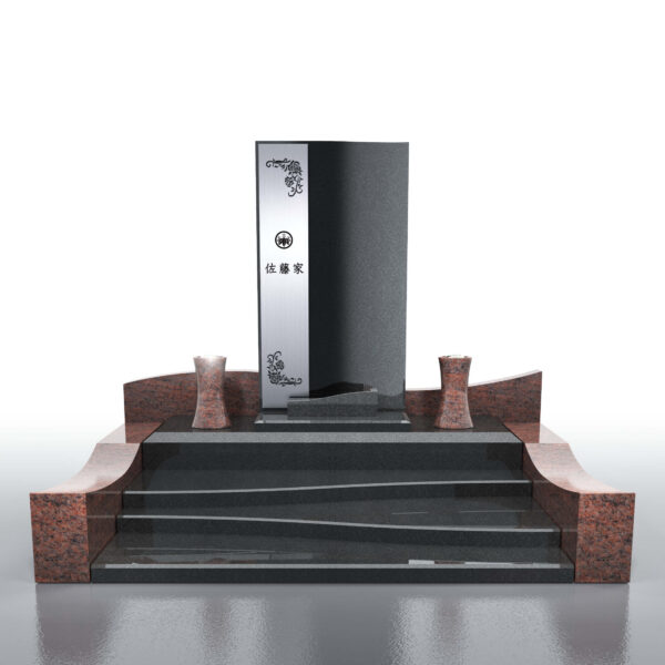 | 材質 | ・外柵:インド黒御影石 ・アクセント:インド赤系御影 ・花立:同石加工(飾り加工対応) ※石種変更可能(国産石対応・色替えも可) |